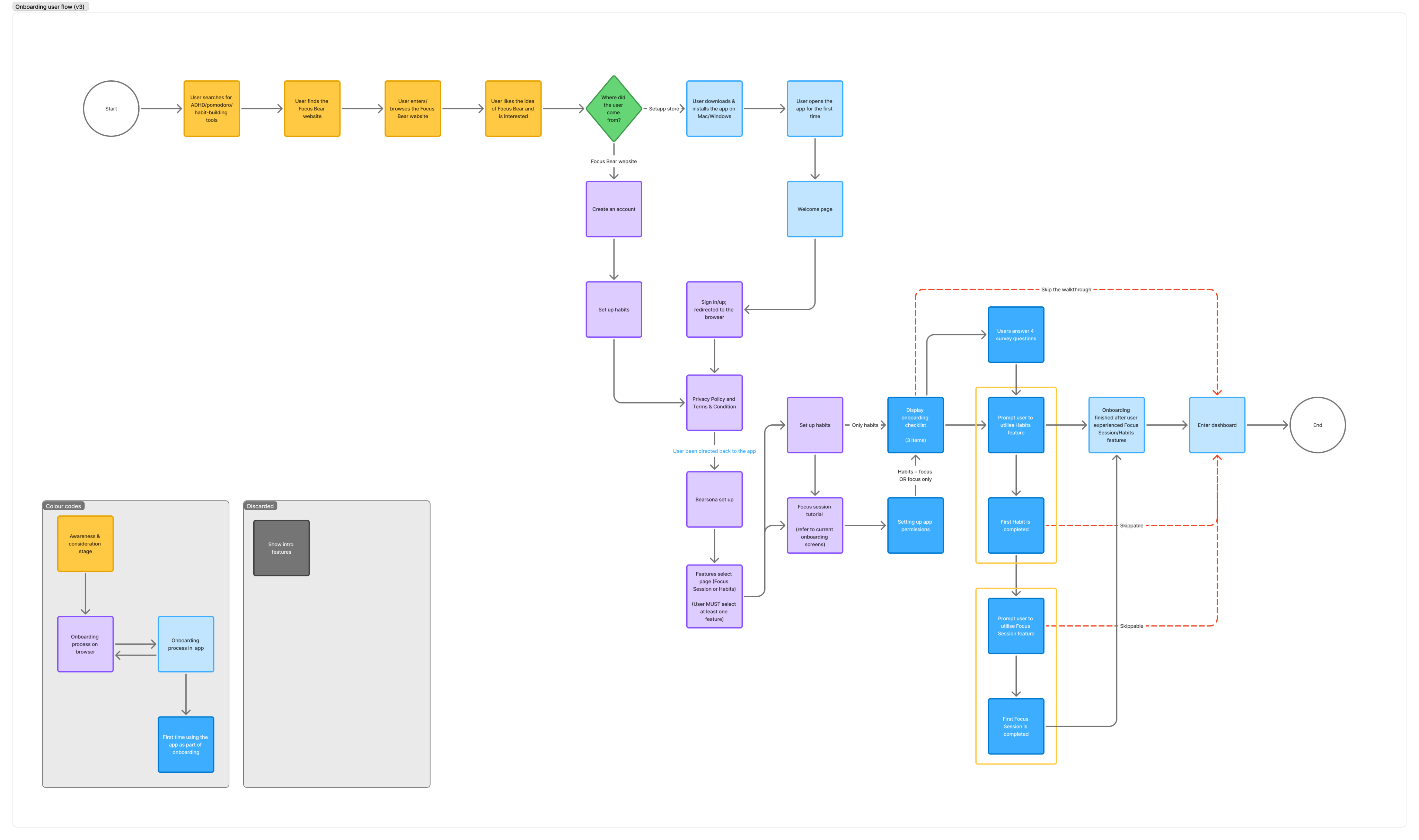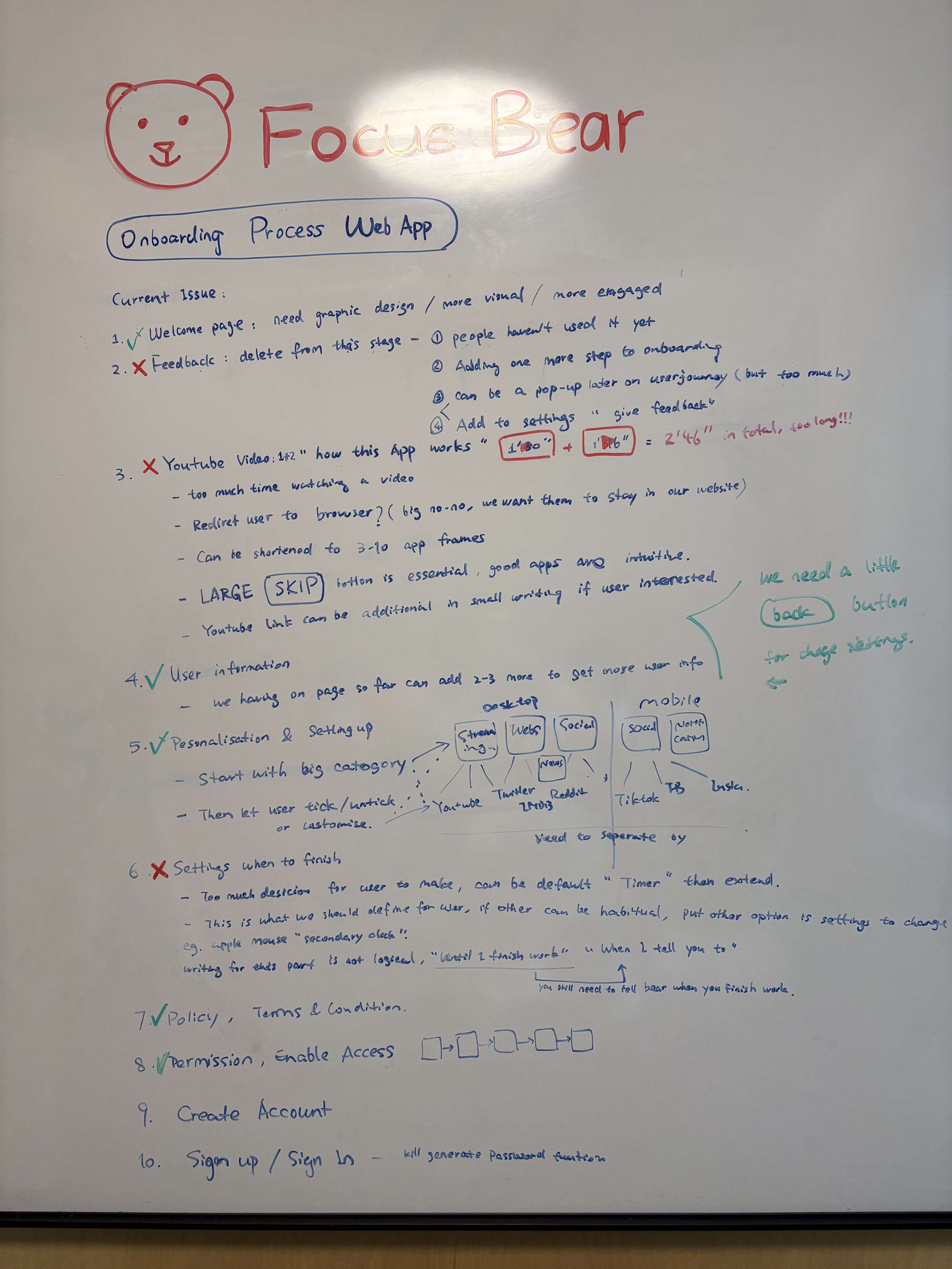New users were leaving without even finishing the onboarding process. Focus Bear was losing 80% of new sign-ups before they even started using the app. I led the end-to-end redesign of the onboarding process and created a visually pleasing, easy to follow structure and concise language. The new user flow resulted in a 50% reduction of drop-offs during onboarding.