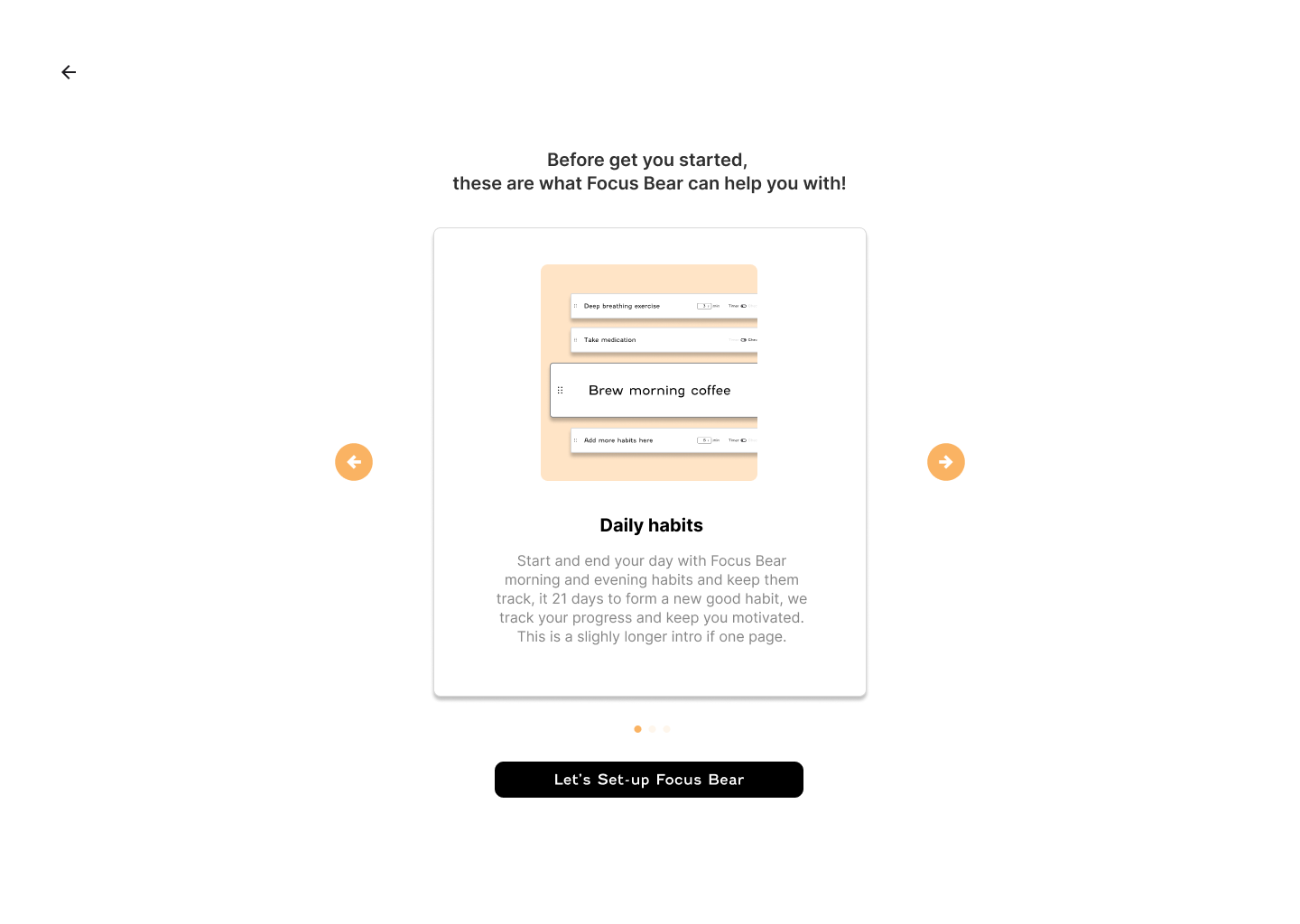 - Clarify product value and help users set up core functions (habits, distractions, focus sessions)
